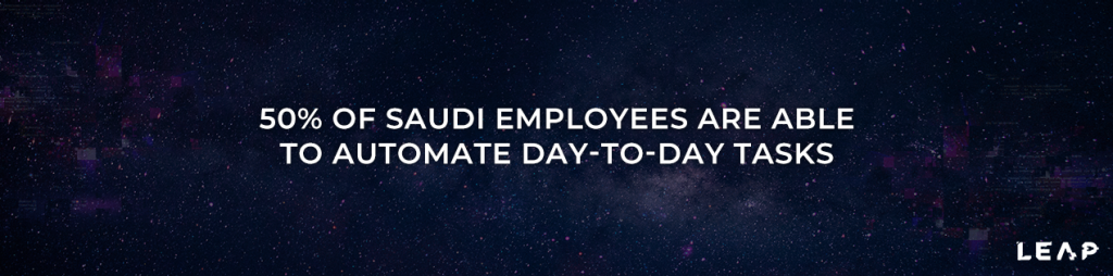Being at the forefront of adopting the latest technology in the region as part of its Vision 2030 and National Transformation Program 2020, surveys show that 50% of Saudi employees are able to automate day-to-day tasks, hence report findings place Saudi Arabia better than the UK and Germany for AI innovation.