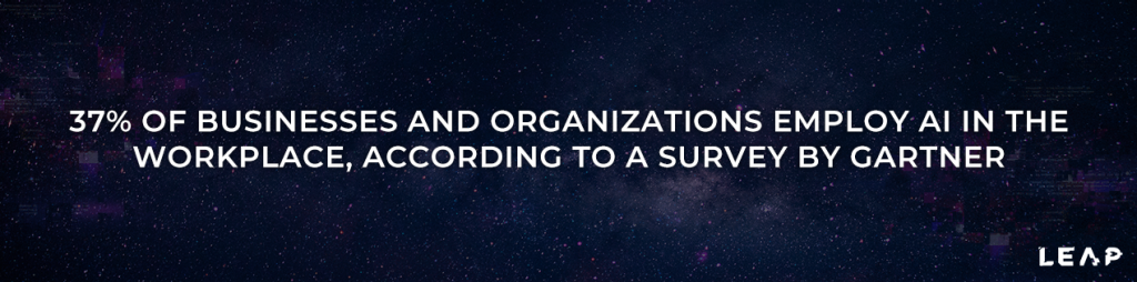 37% of businesses and organizations employ AI in the workplace, according to a survey by Gartner.